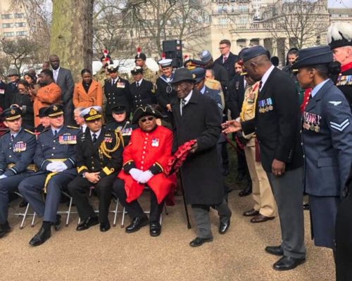 The Meeting of 4 X Royal Air Force Veterans at the Commonwealth Day Service 11th March 2019 at Memorial Gates, Constitution Hill, London