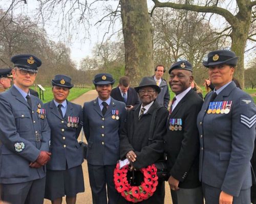 Mr Albert Jarrett enlisted aged 17 in Jamaica and completed his basic training at Royal Air Force Melksham, Wiltshire England. He later served at Sutton Coldfield, Grantham Maintenance Units during World War 2 where he was a major part of a team who supplied vital equipment to the frontline. His last Unit was Royal Air Force Cosford until his return to Jamaica in 1947 where later demobbed.