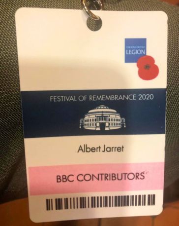 One of 6 veterans who were invited to participate in the proceedings of the Remembrance Service, Royal Albert Hall, 2020