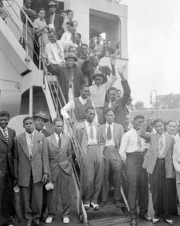 Jamaican passengers disembark the HMT Empire Windrush at the Port of Tilbury, June 1948